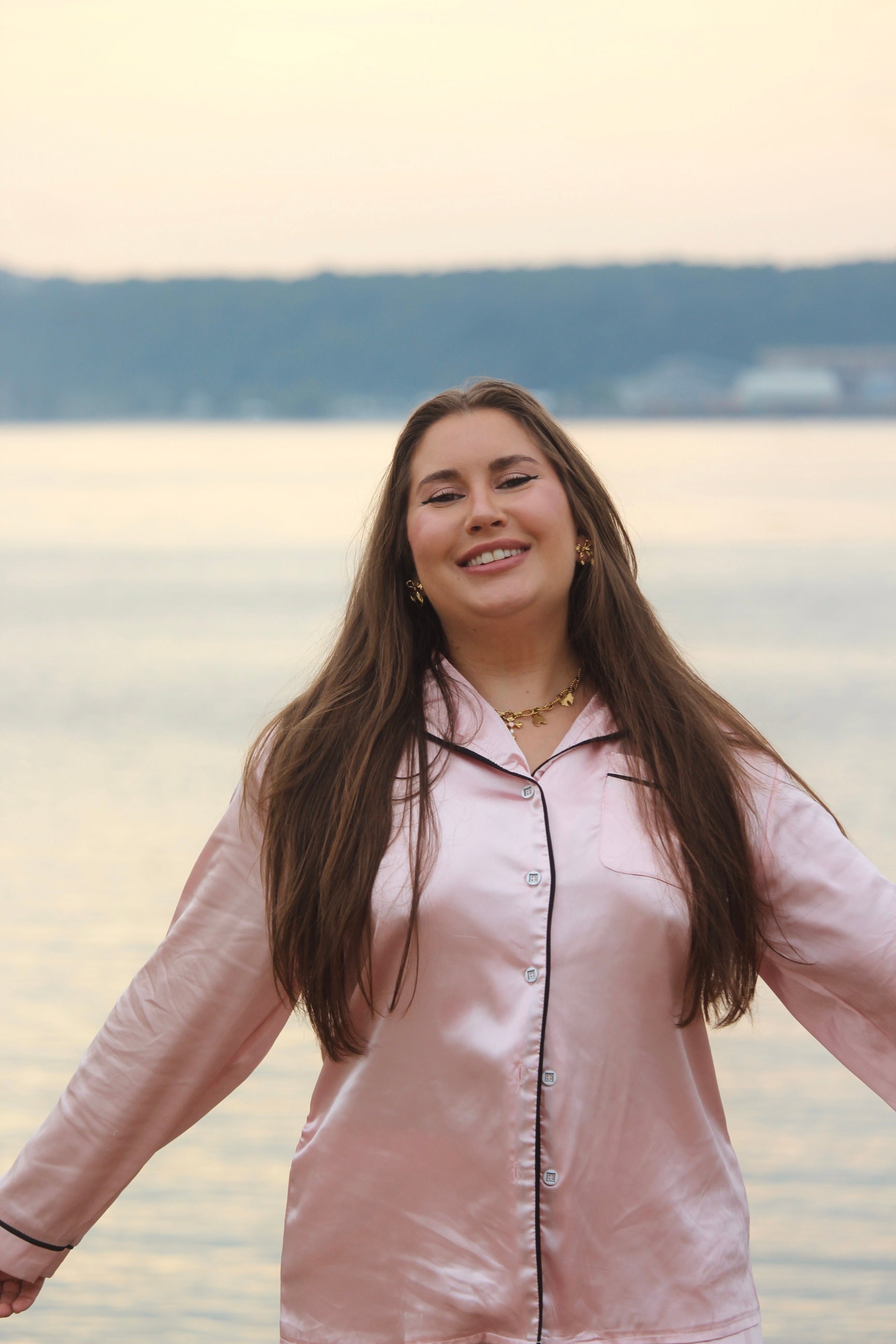Chemise longue en satin de l'ensemble Blossom. Haut et bas vendus séparément.