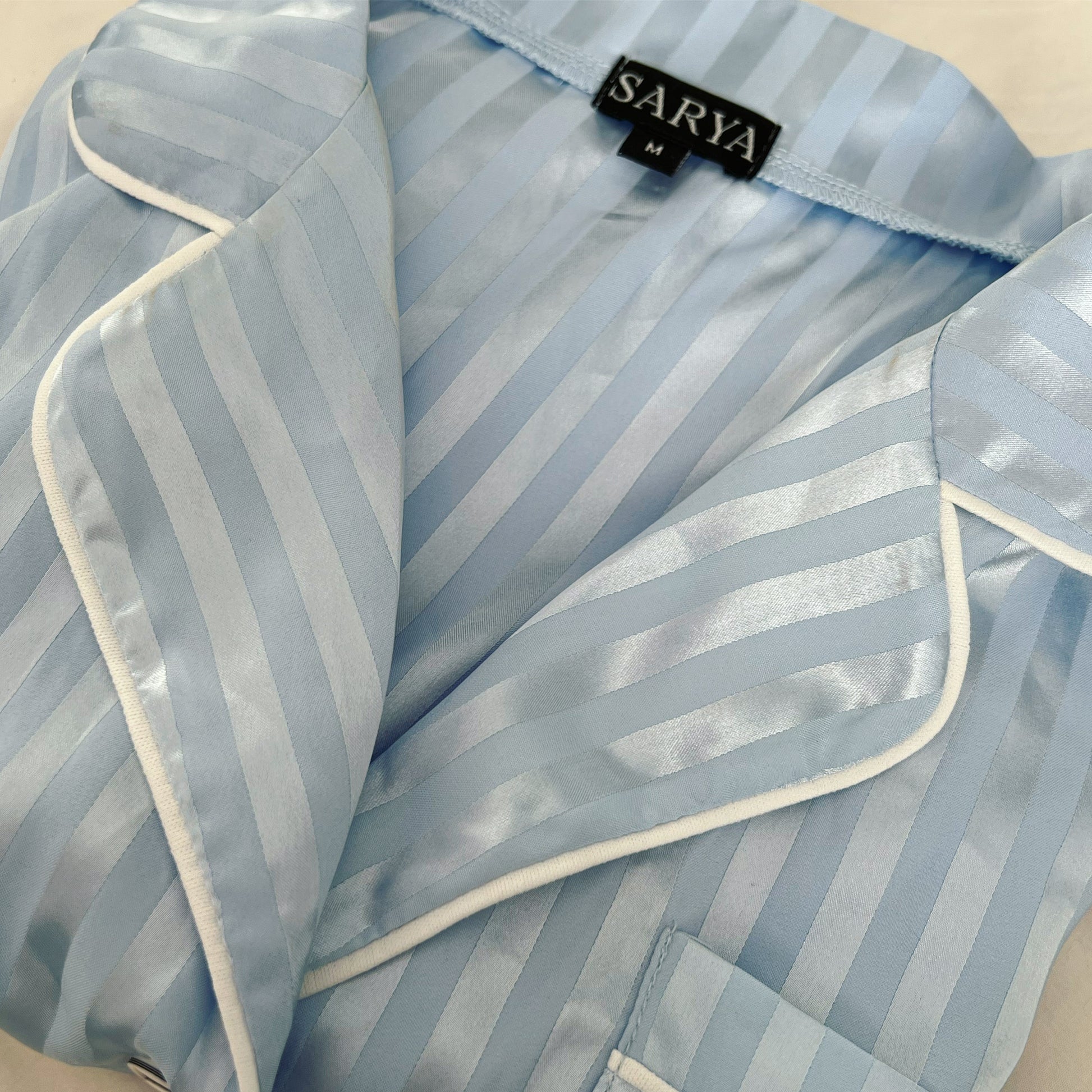 Our best seller (PINK KISS) now available in blue! Premium satin shirt with a shimmering look. Super soft and comfortable, elegant at the same time.