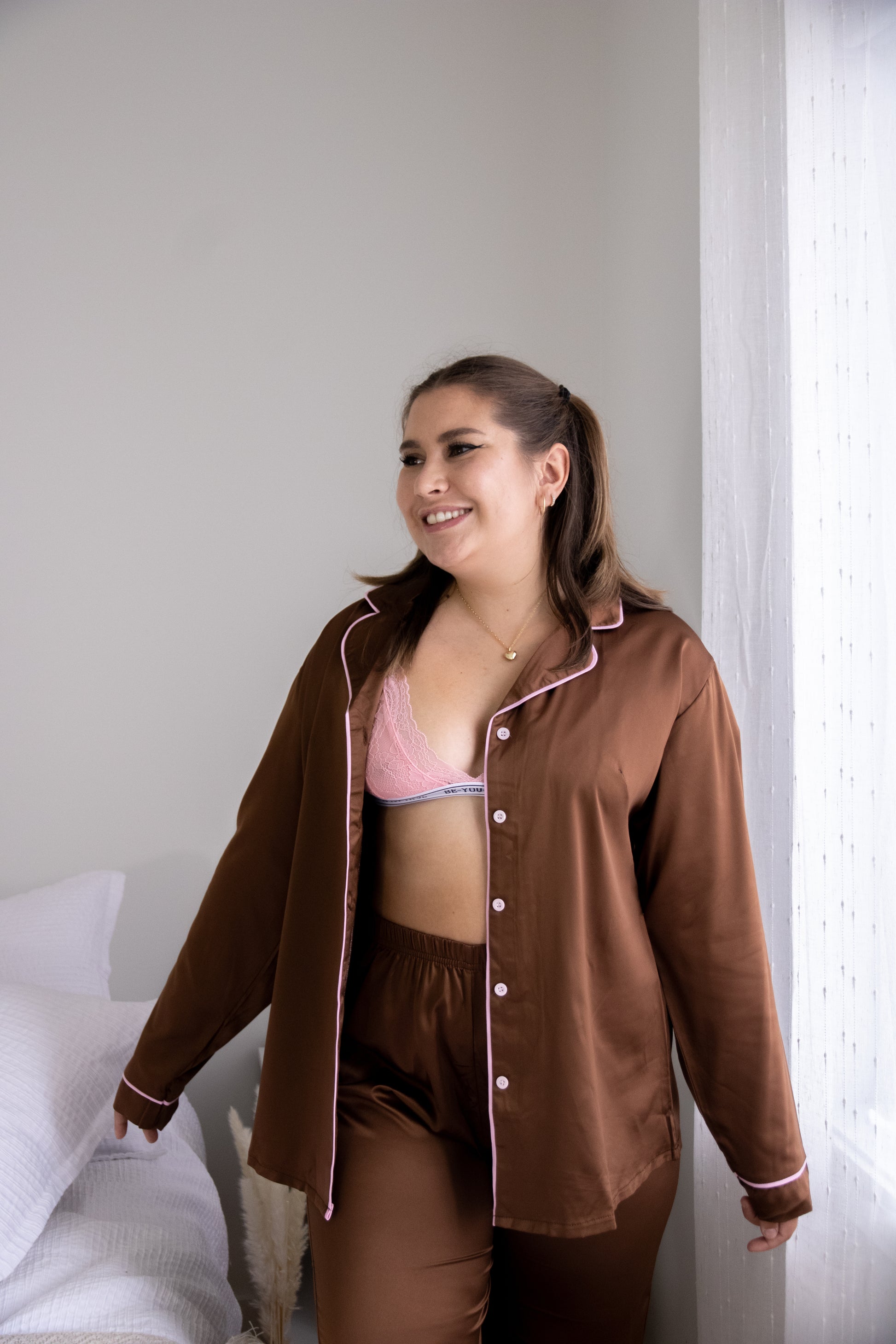 It fits loosely. However, satin has limited stretch. I therefore recommend ordering your usual size. If you have any questions, please write to us! We'd be happy to help.