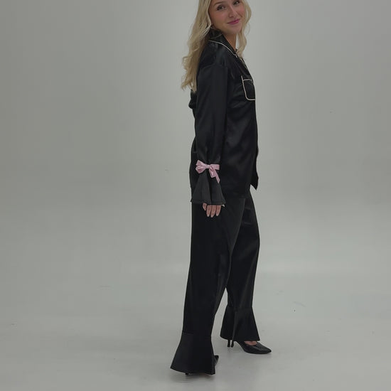 La chemise se démarque par ses mignonnes boucles roses au poignets, ainsi que ses coutures et boutons roses pâles.